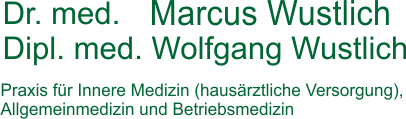 wir begrüßen Sie herzlich auf den Internetseiten der Gemeinschaftspraxis von Dr. med. Marcus Wustlich und Dipl. med. Wolfgang Wustlich.